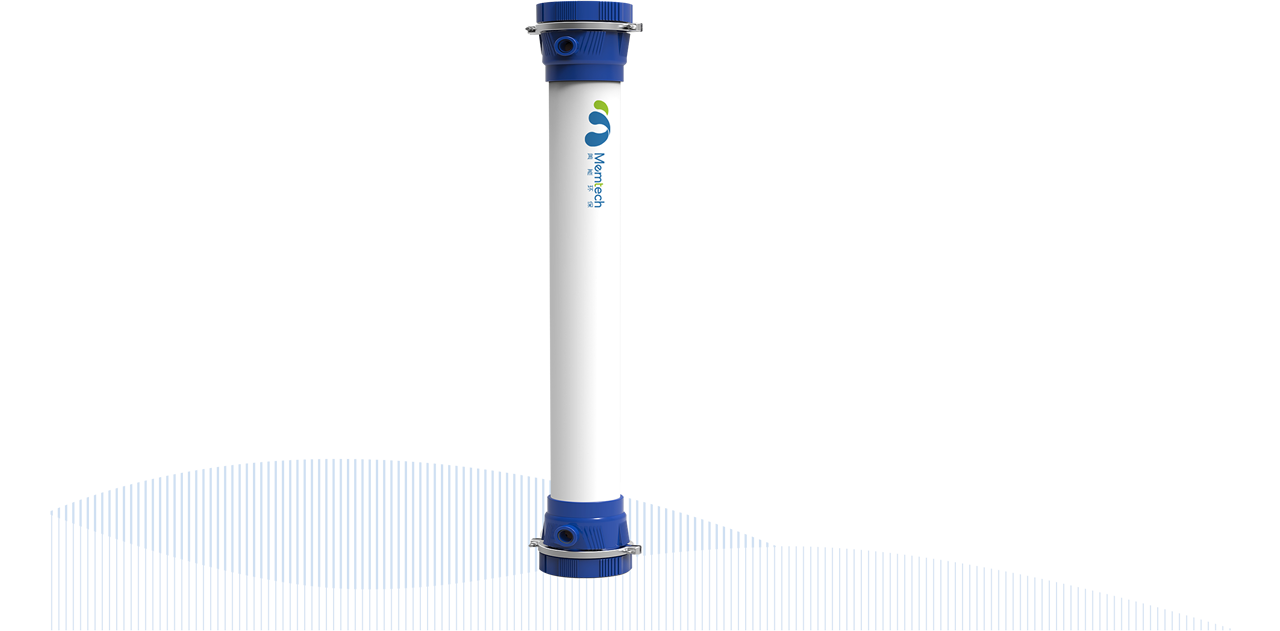 外置式MBR技術颠覆了傳統MBR技術和改良MBR技術的應用形式,突破了傳統MBR技術的能(néng)耗瓶頸,是MBR技術拓展應用領域的重要技術方向(xiàng)之一。外置式MBR技術以柱式MBR膜組件作為核心工藝單元,以集成(chéng)撬裝的形式進(jìn)行工程應用,實現了MBR系統應用形式的模塊化和設備化。